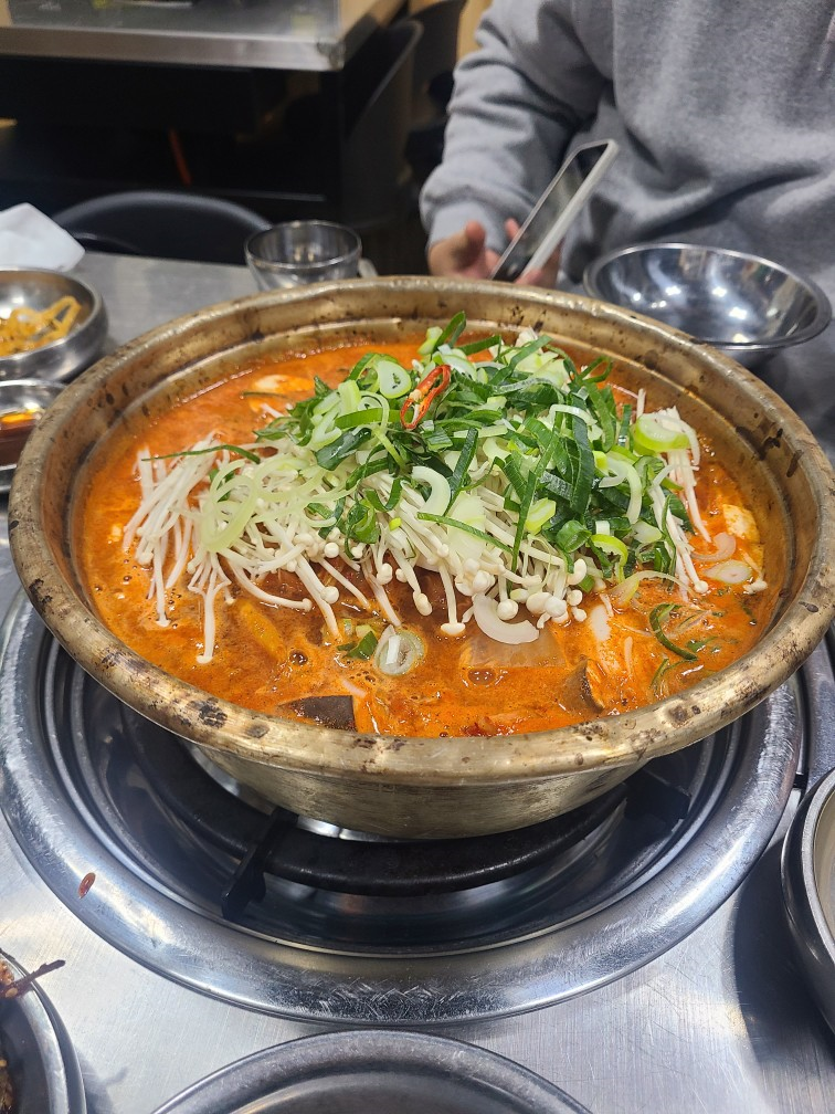 아마도 돼지의 육즙과 김치의 칼칼함이 우러 나와서 잘 조화를 이루기 때문인 듯 싶습니다.
