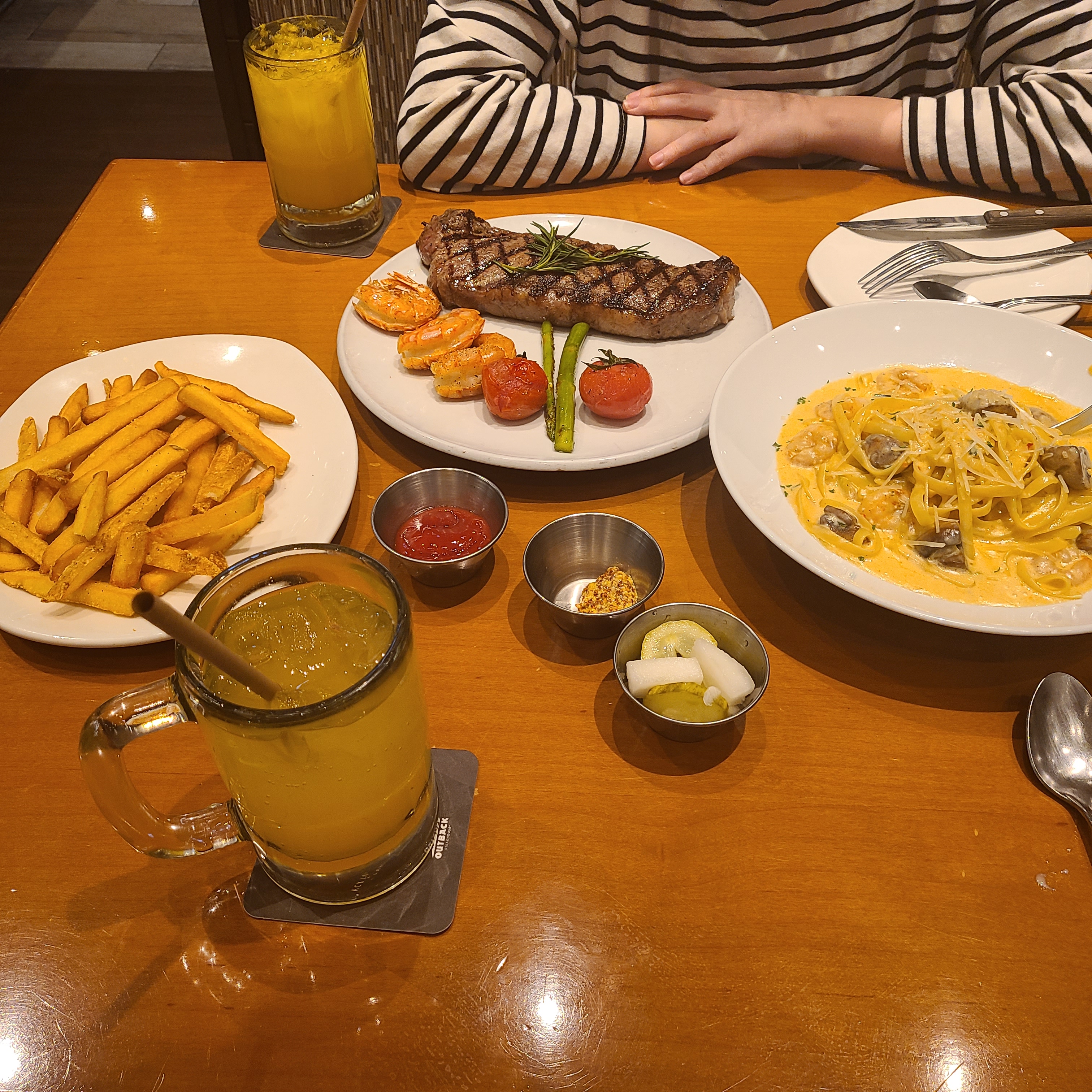 이 세트의 특징은 에이드와 스테이크, 파스타로 구성이 되어 있는데요, 양이 꽤 많습니다...